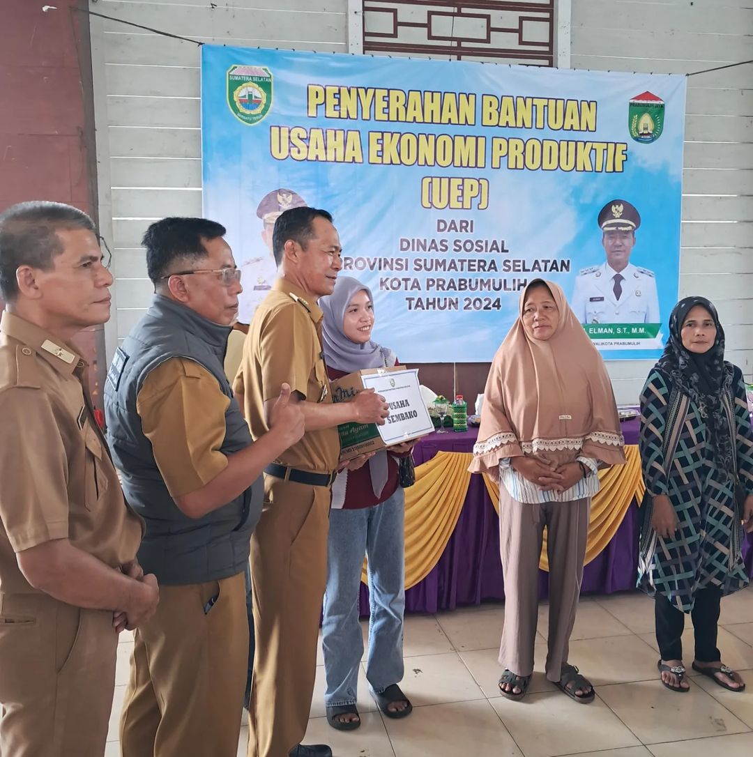 Dinas Sosial Provinsi Sumatera Selatan melalui Dimas Sosial Kota Prabumulih menyerahkan Paket Bantuan Usaha Ekonomi Produktif (UEP) kepada 70 KK di Kota Prabumulih. Adapun usaha yang mendapatkan bantuan yaitu, usaha gorengam, usaha dagang sayur, usaha tekwan model, usaha steam motor dan usaha pempek.