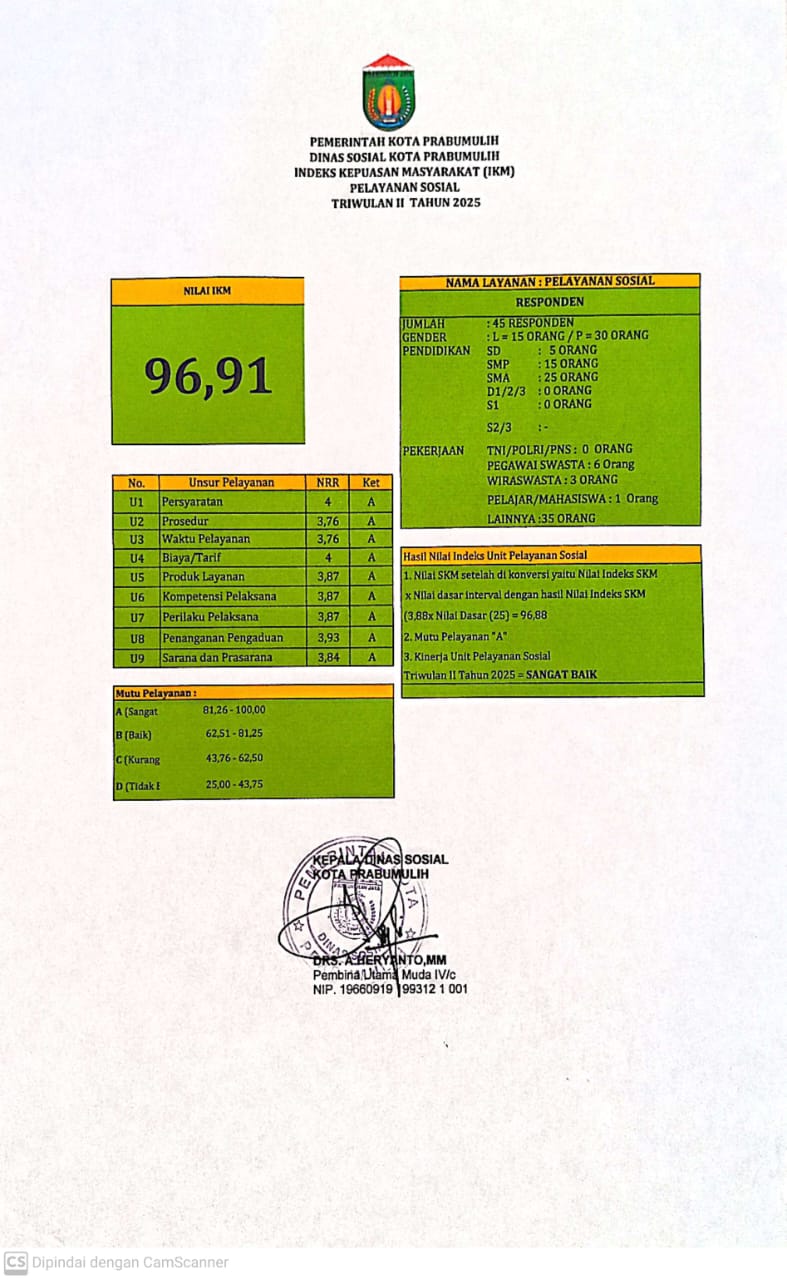 INDEKS KEPUASAN MASYARAKAT DINAS SOSIAL KOTA PRABUMULIH TRIWULAN II TAHUN 2025