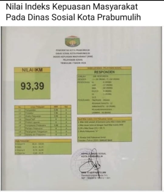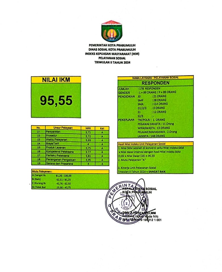 Indeks Kepuasan Masyarakat Dinas Sosial Kota Prabumulih Triwulan II