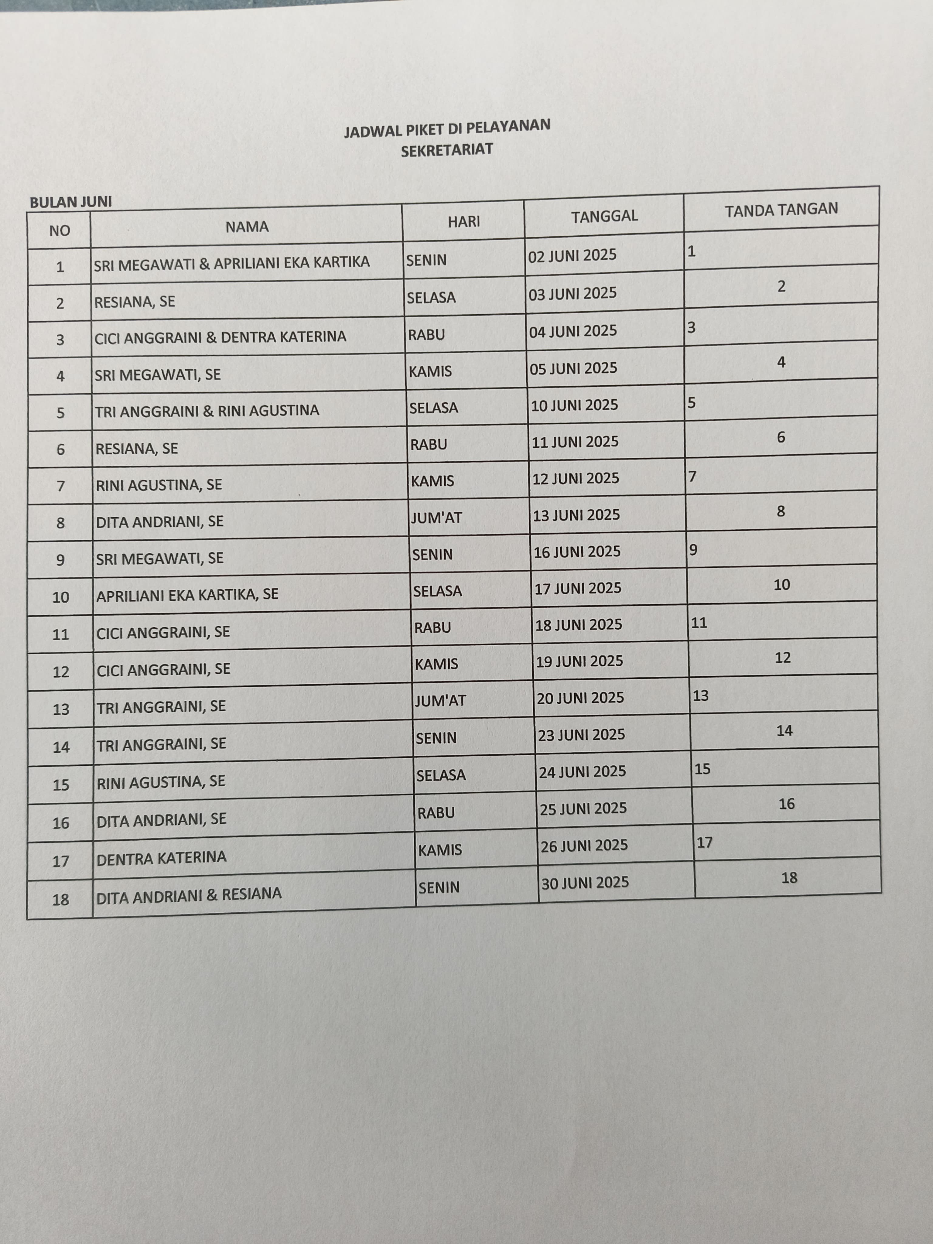 Jadwal Petugas Pelayanan Bulan Juni 2025